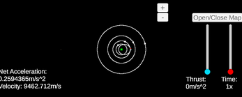 For rocket mode: Use A and D to rotate. Thrust is in the direction you are facing. All other controls should be self-explanatory. The map shows the trajectory you will follow in freefall, or if you stop applying thrust now.